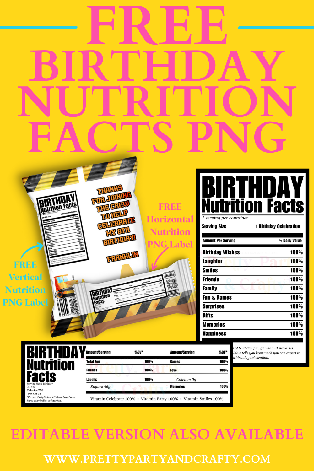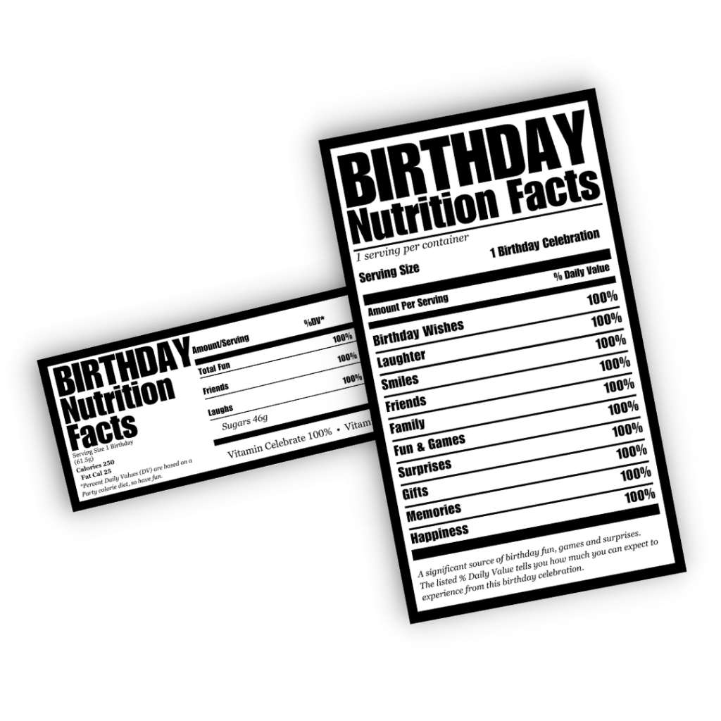 Free Birthday Nutrition Facts PNG Pretty Party U0026 Crafty