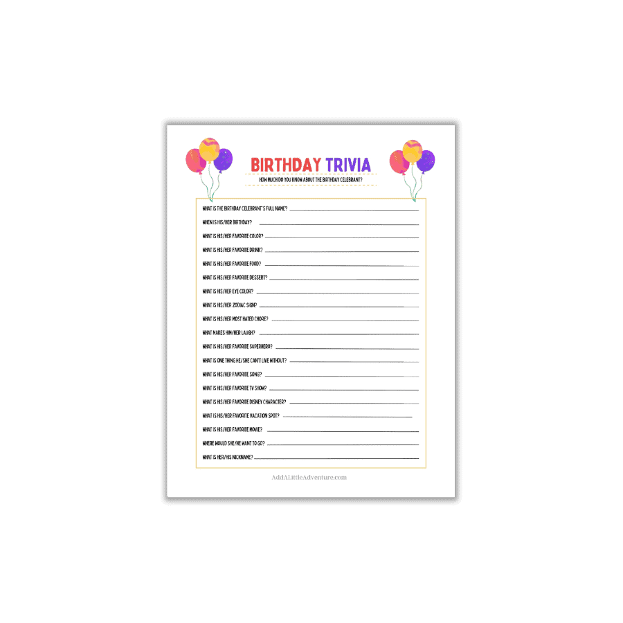 One of the best things about printable birthday trivia games is that they are customizable. You can tailor the questions to suit the birthday person’s interests or go with a general trivia theme that everyone will love.