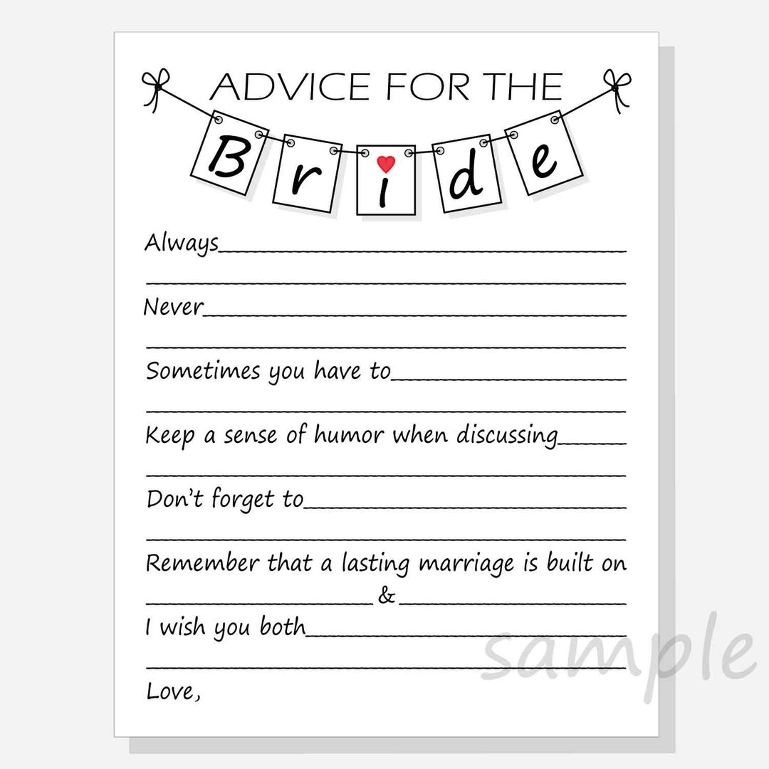 DIY Advice For The Bride U0026 Groom Printable Cards For A Bridal Shower Or Wedding Tiny Heart Design Always Never Etc