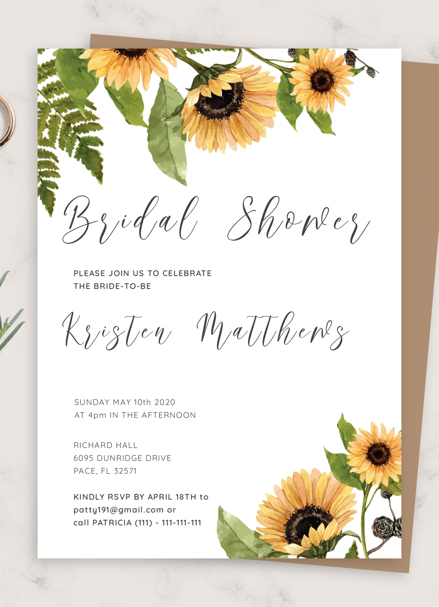 Download Printable Sunflower Bridal Shower Invitation PDF