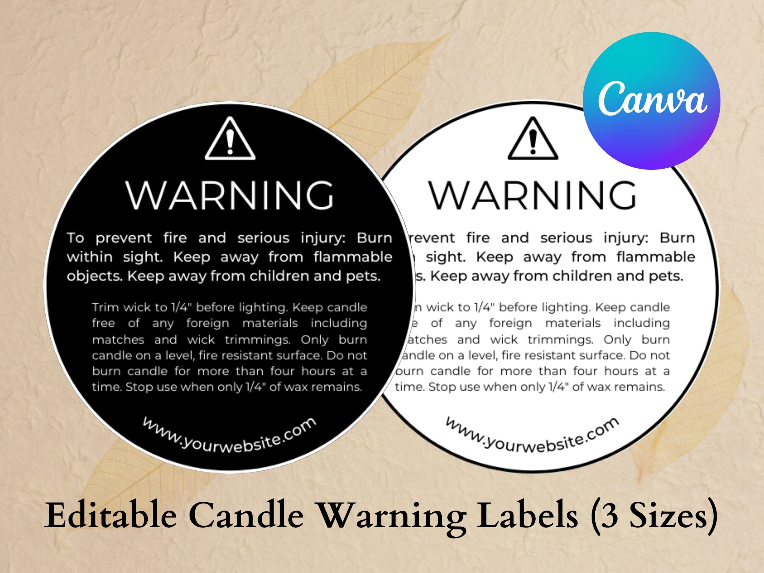 Editable Candle Warning Label Template Canva Candle Care Guide Candle Small Business Stickers Printable Candle Warning Labels Etsy
