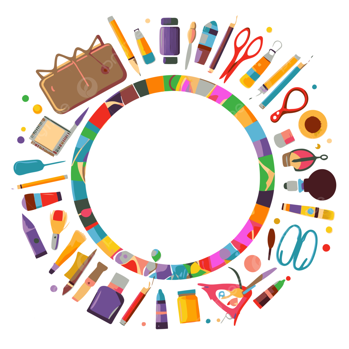 Craft Supplies Vector Sticker Clipart Circle Full Of Colorful Crafts Cartoon Sticker Clipart PNG And Vector With Transparent Background For Free Download