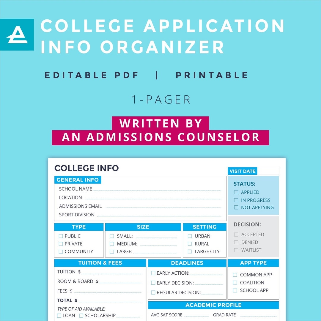 College Application Info Organizer Printable Written By An