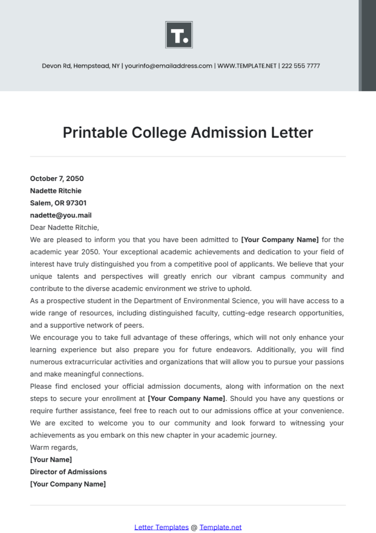 Free Printable College Admission Letter Template To Edit Online