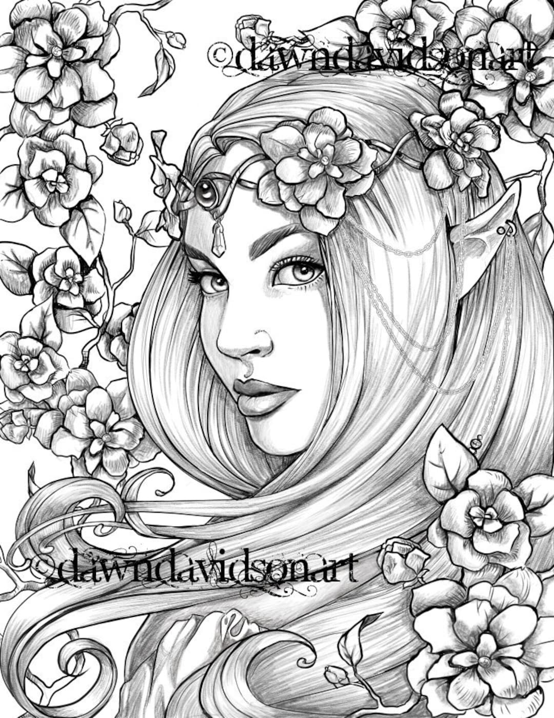 Freckles The Fairy Coloring Page Printable Colouring For Adults Instant Download Grayscale Coloring Fantasy Stress Relief Etsy