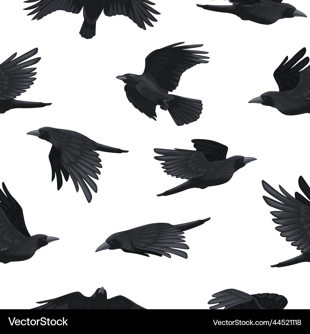 Crow Pattern Seamless Print Of Black Flying Vector Image
