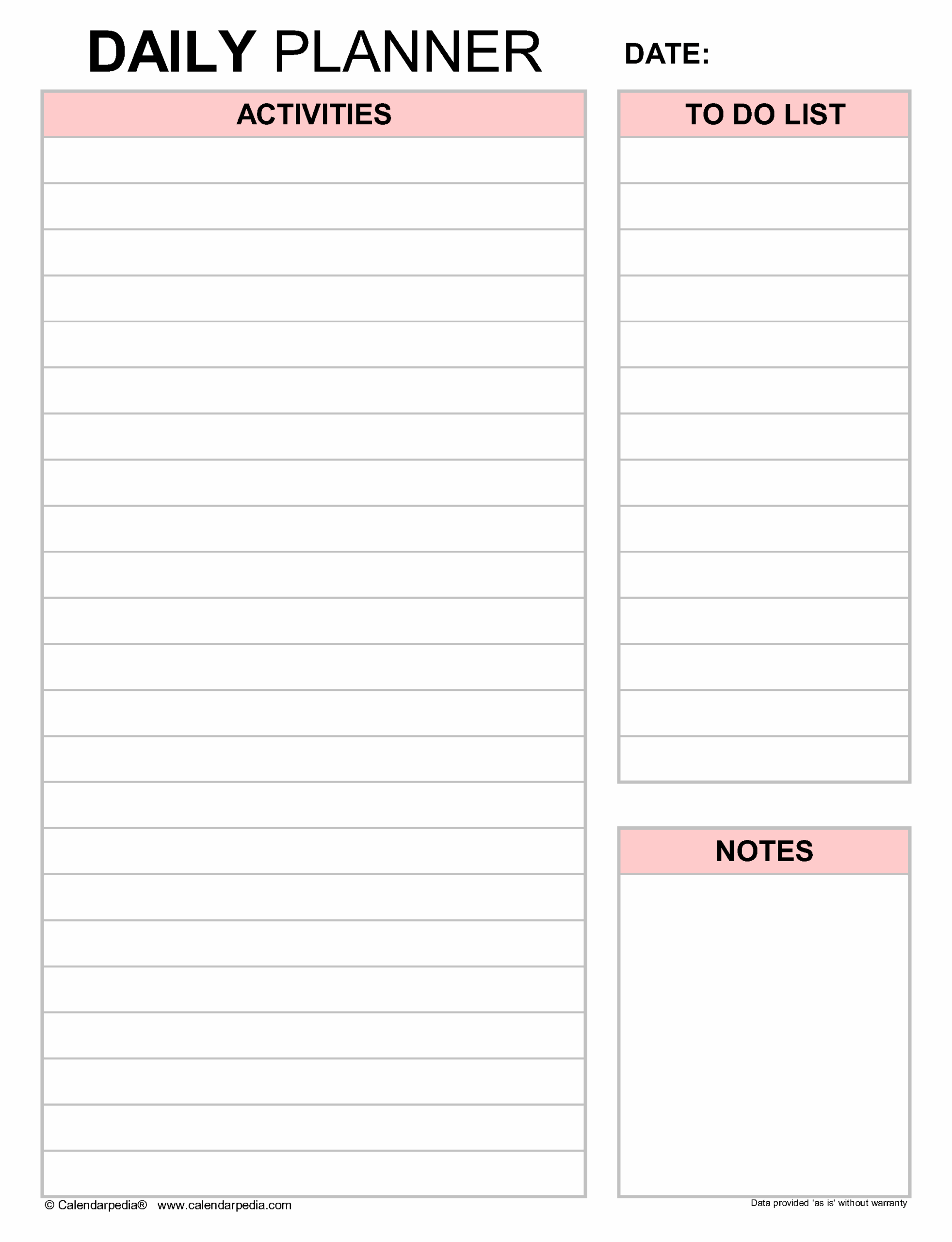 Free Printable Daily Planner Templates PDF Format DIY Projects Worksheets Library