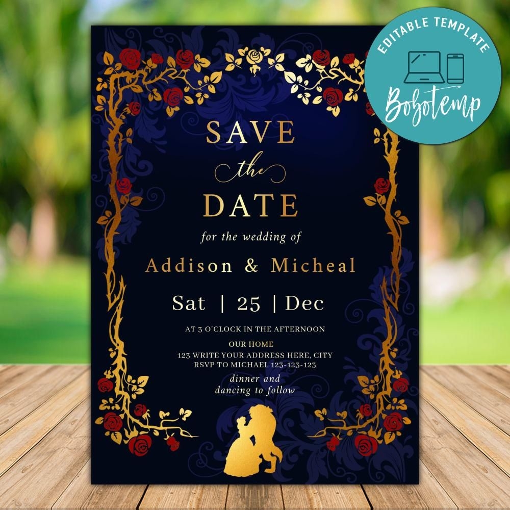 Printable Beauty And The Beast Save The Date Invitation DIY Bobotemp
