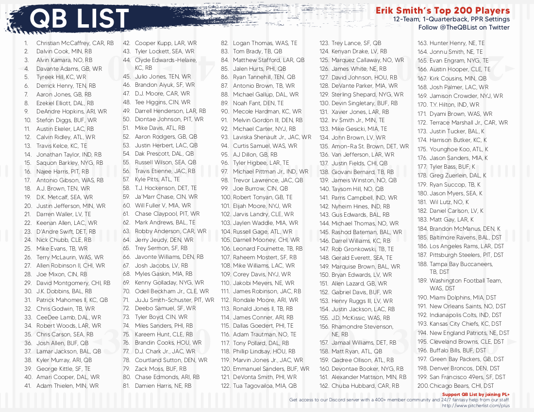 QB List Fantasy Football Cheat Sheet For 2021 Drafts QB List