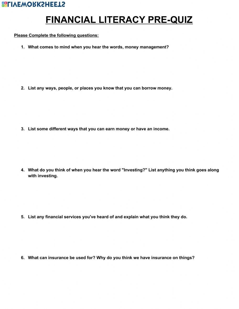 Intro To Financial Literacy Pre Quiz Worksheet Live Worksheets
