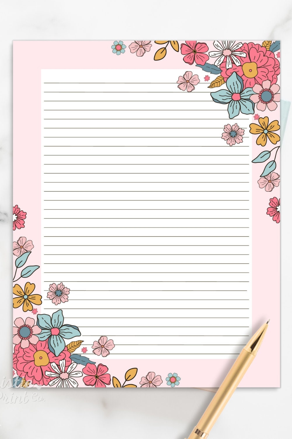 Floral Stationery Printable Floral Lined Paper Printable Stationery Paper Journal Paper Digital Download Stationary Paper Penpal Letter Etsy