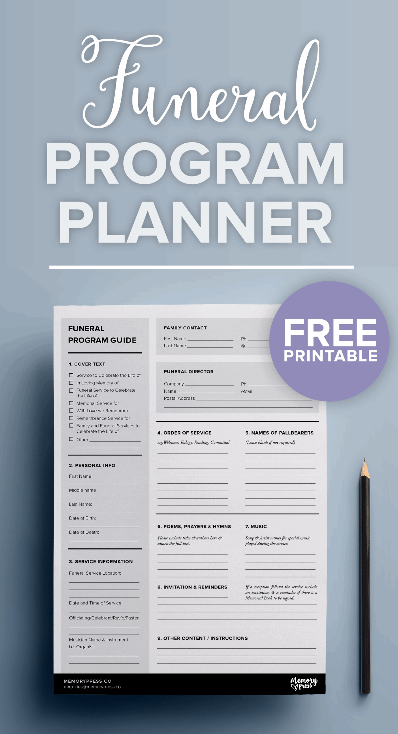 Free Printable Funeral Planner