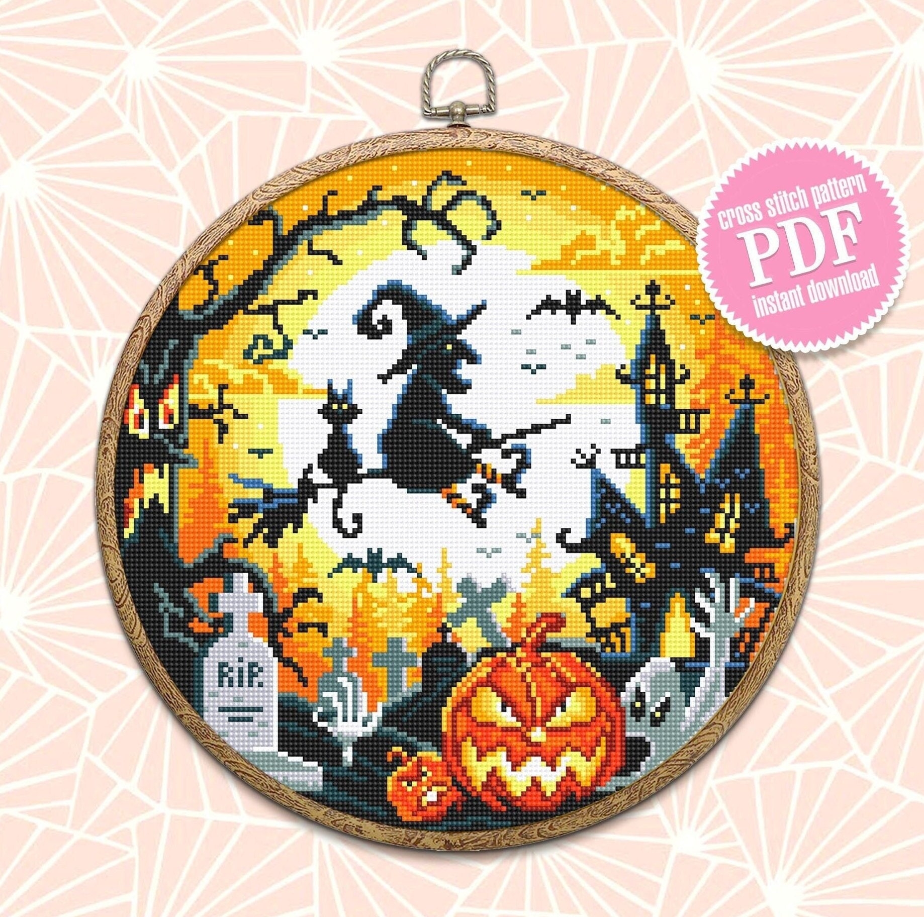 Halloween Cross Stitch Pattern Download PDF Halloween Moon Cross Stitch Chart Spooky Cross Stitch Cute Halloween Witch Magic Embroidery H26 Etsy Australia