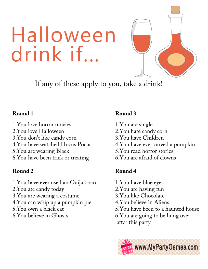 Free Printable Halloween Drink If Game For Adults
