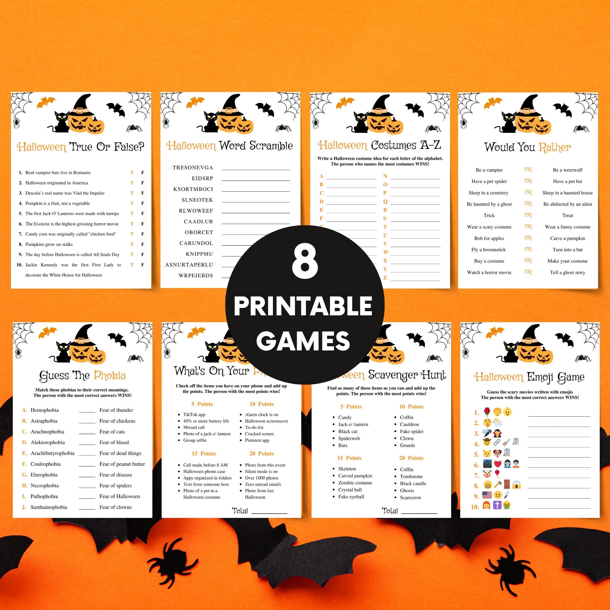 Printable Halloween Party Games Halloween Game Bundle Orange And Black Halloween Decor Adult Halloween Games Pack Instant Download Etsy