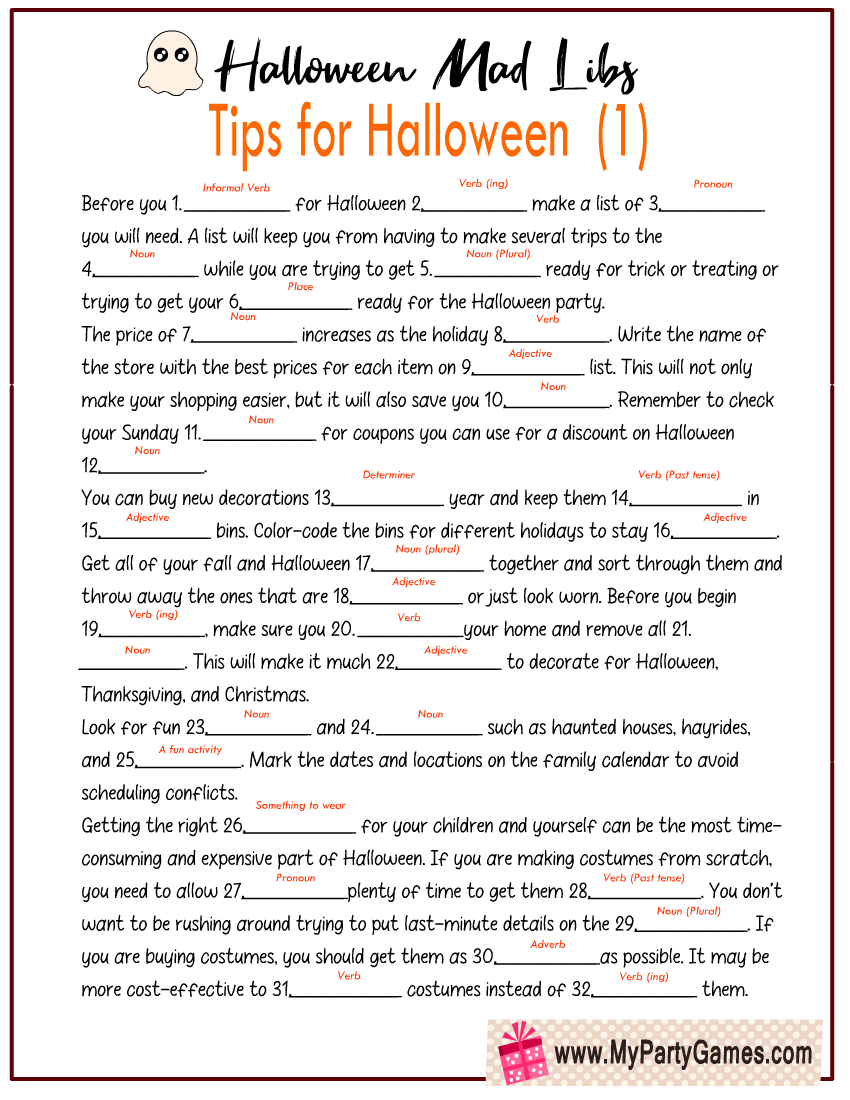 Halloween Mad Libs Free Printable For A Frightfully Good Time This Year