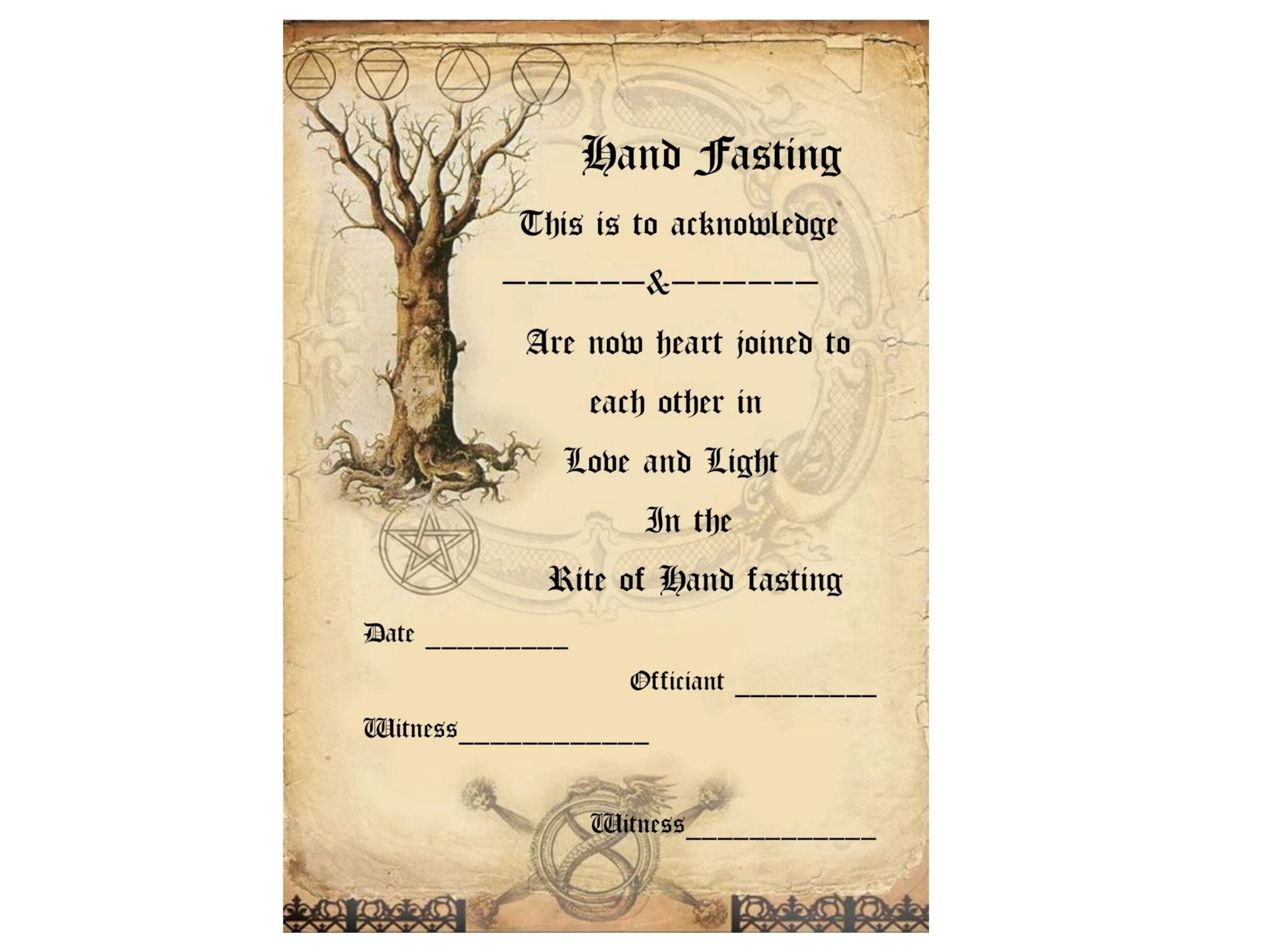 Handfasting Certificate Wedding Marriage Parchment Wicca Pagan Hand Fasting Tree Of Life Download