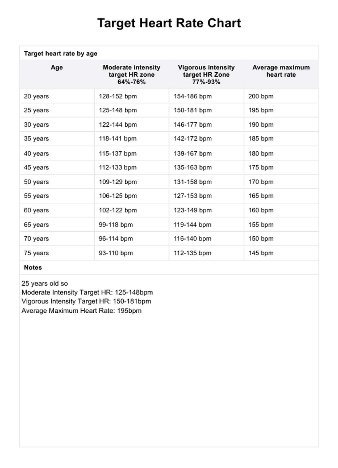 Target Heart Rate Chart U0026 Example Free PDF Download