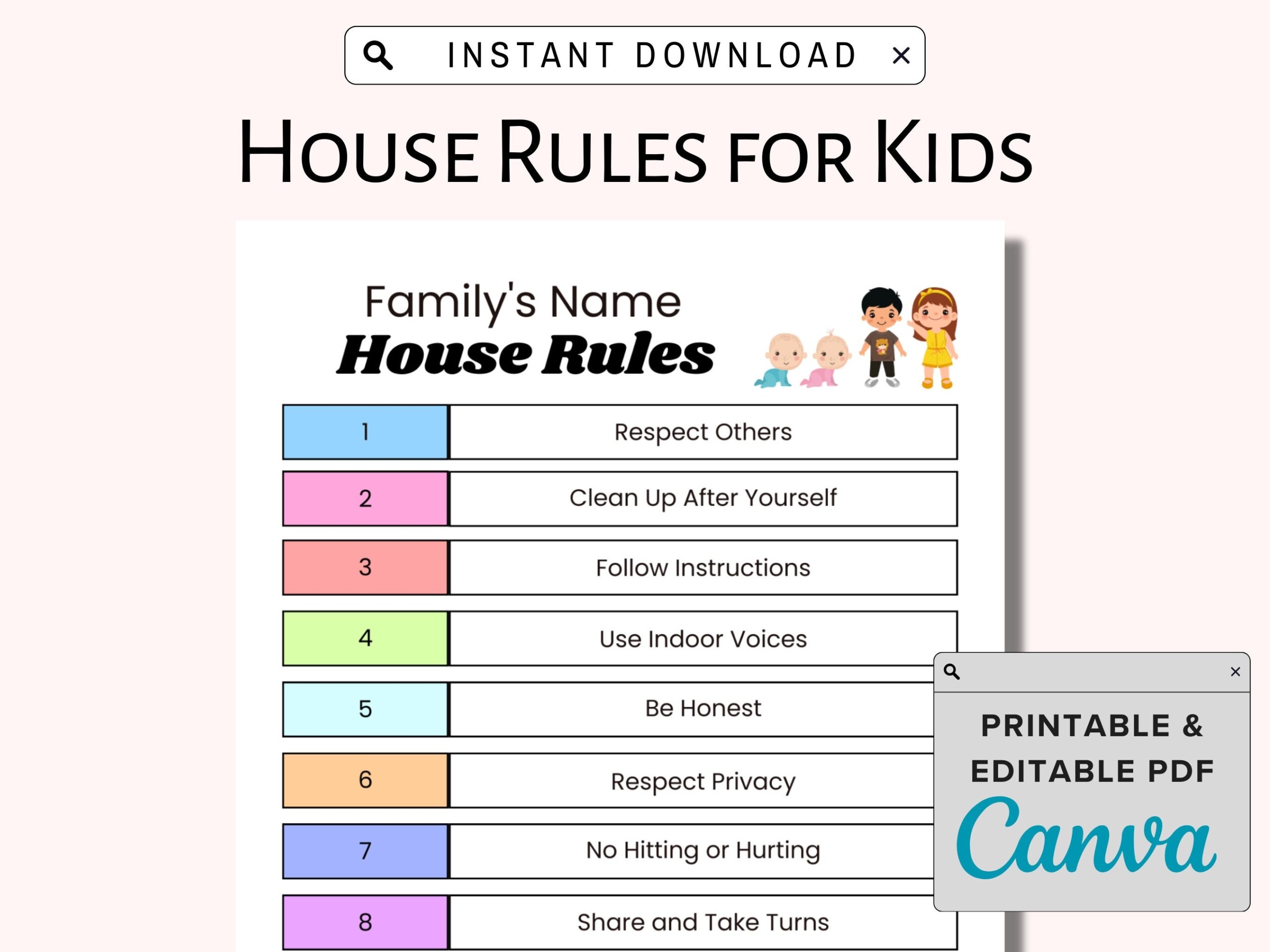 House Rules For Kids Printable Family Home Values PDF Etsy