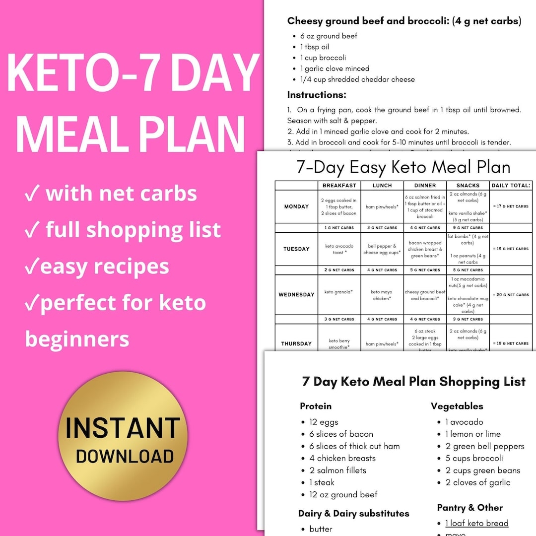 Super Easy 7 Day Keto Meal Plan Keto Diet Meal Plan PDF Meal Plan With Net Carbs And Shopping List Low Carb Diet Keto Weight Loss Etsy New Zealand