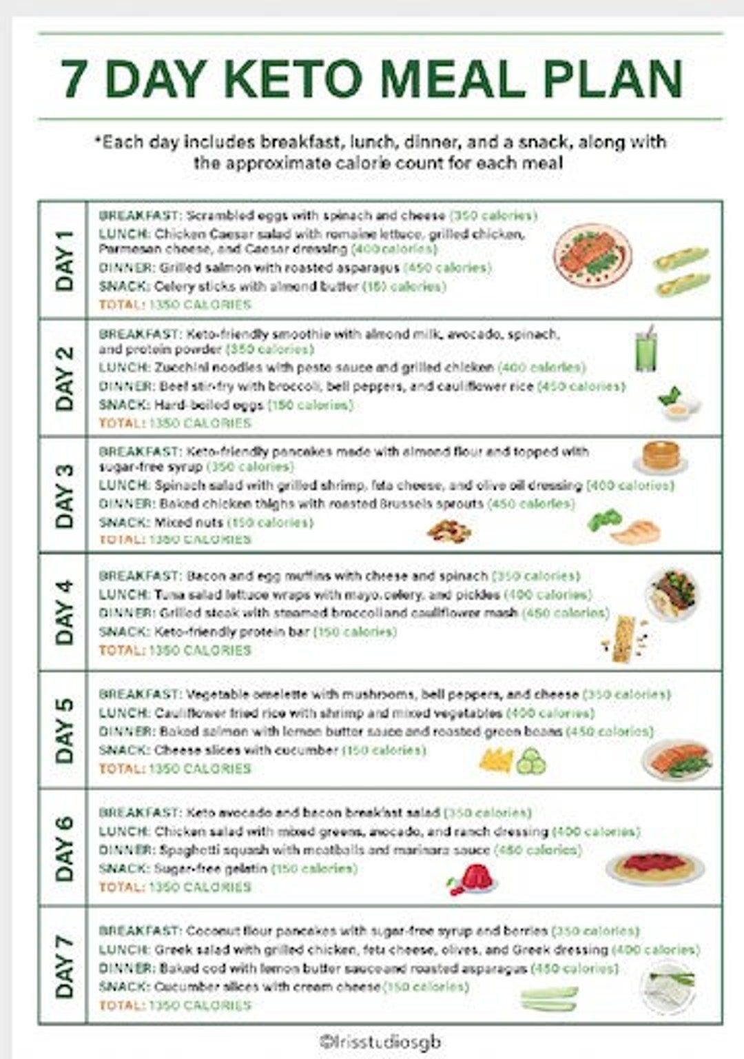 7 Day Keto Meal Plan Low Carb Recipes Calorie Tracker PDF Etsy