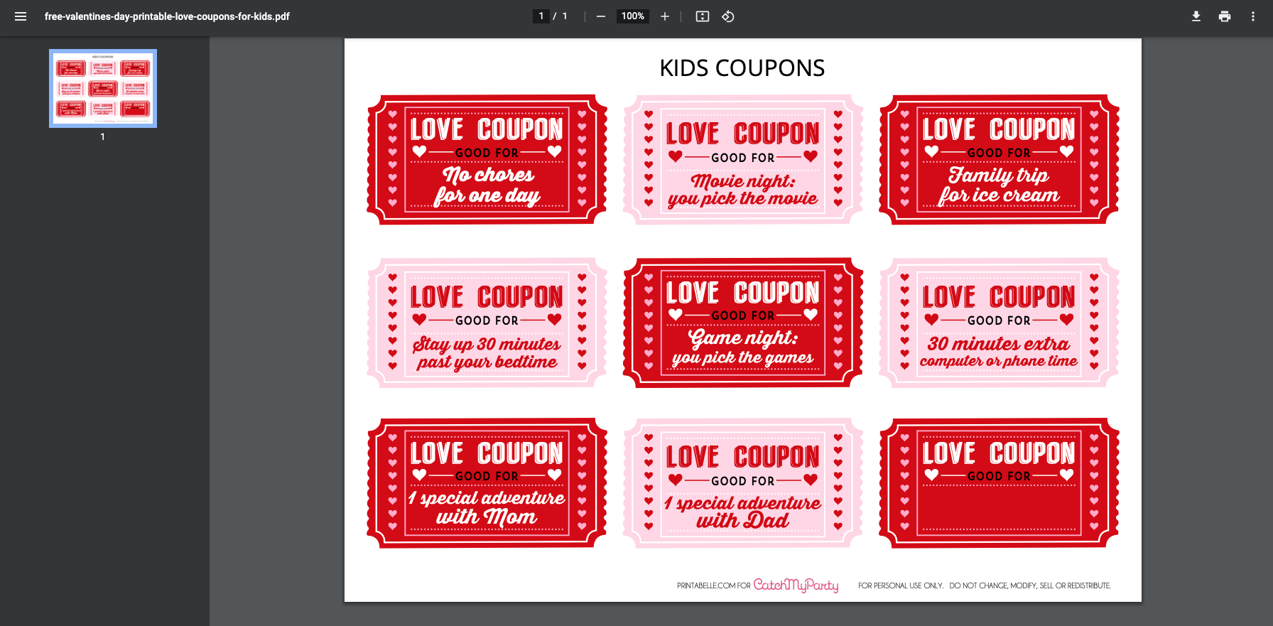 Free Printable Kids Valentine s Day Love Coupons Catch My Party