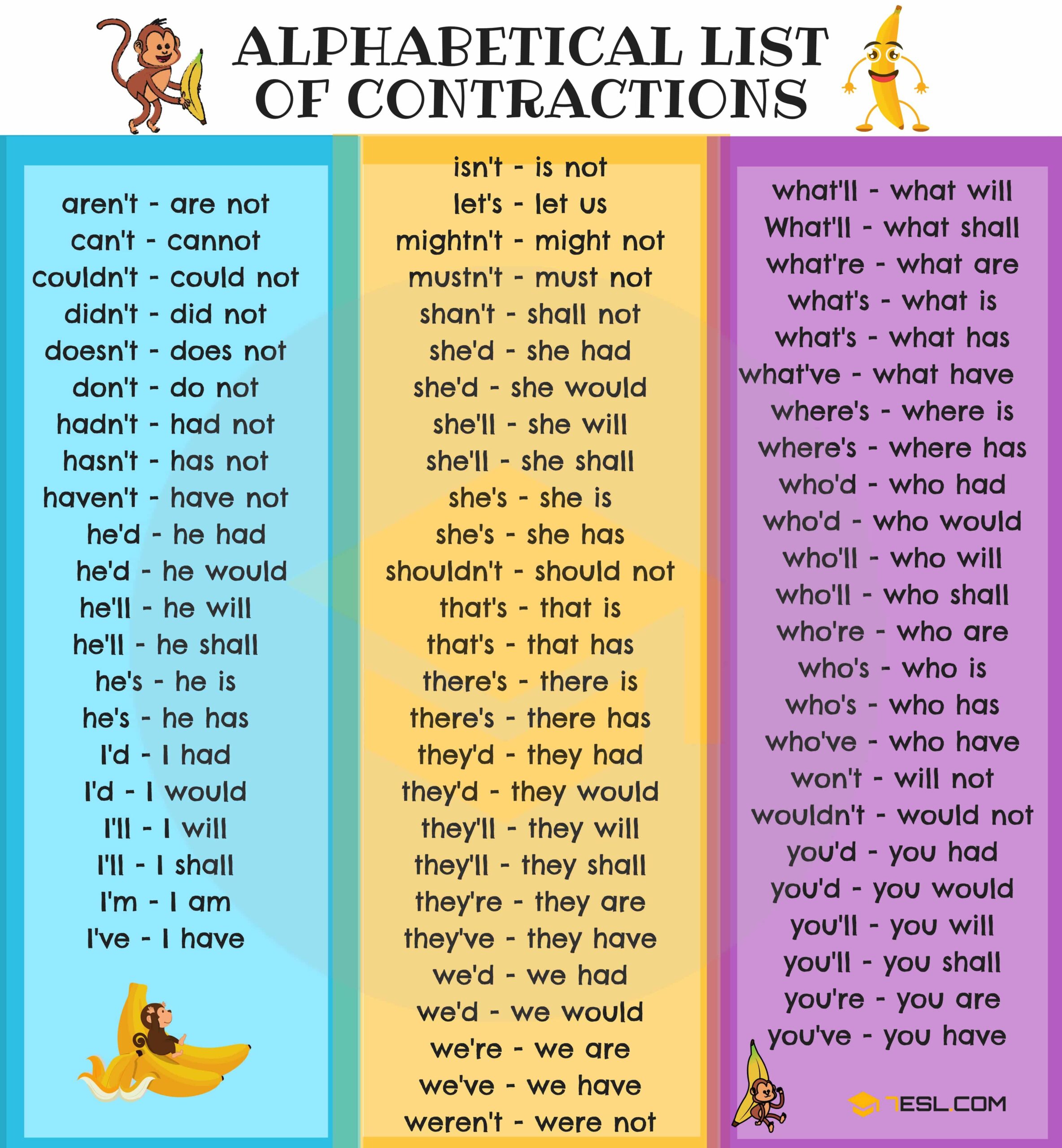 Whether you’re a student working on an essay or a professional writing an important email, having a list of contractions at your fingertips can save you time and effort. It’s a quick reference guide that can help you avoid common mistakes.