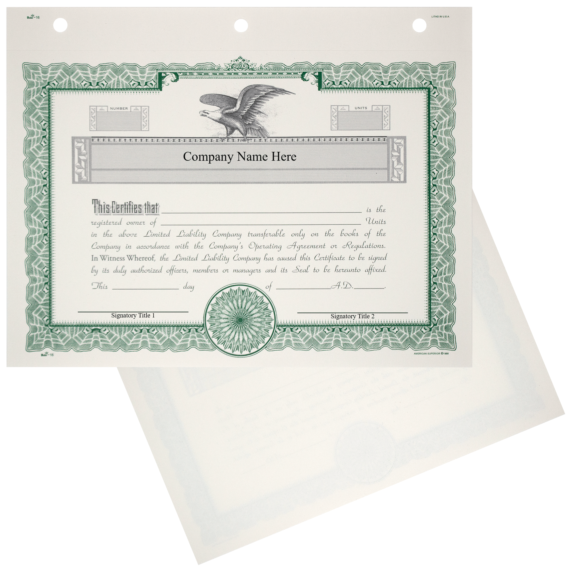 Amazon Custom Printed LLC Membership Certificates HUBCO Green 20 Pack Office Products
