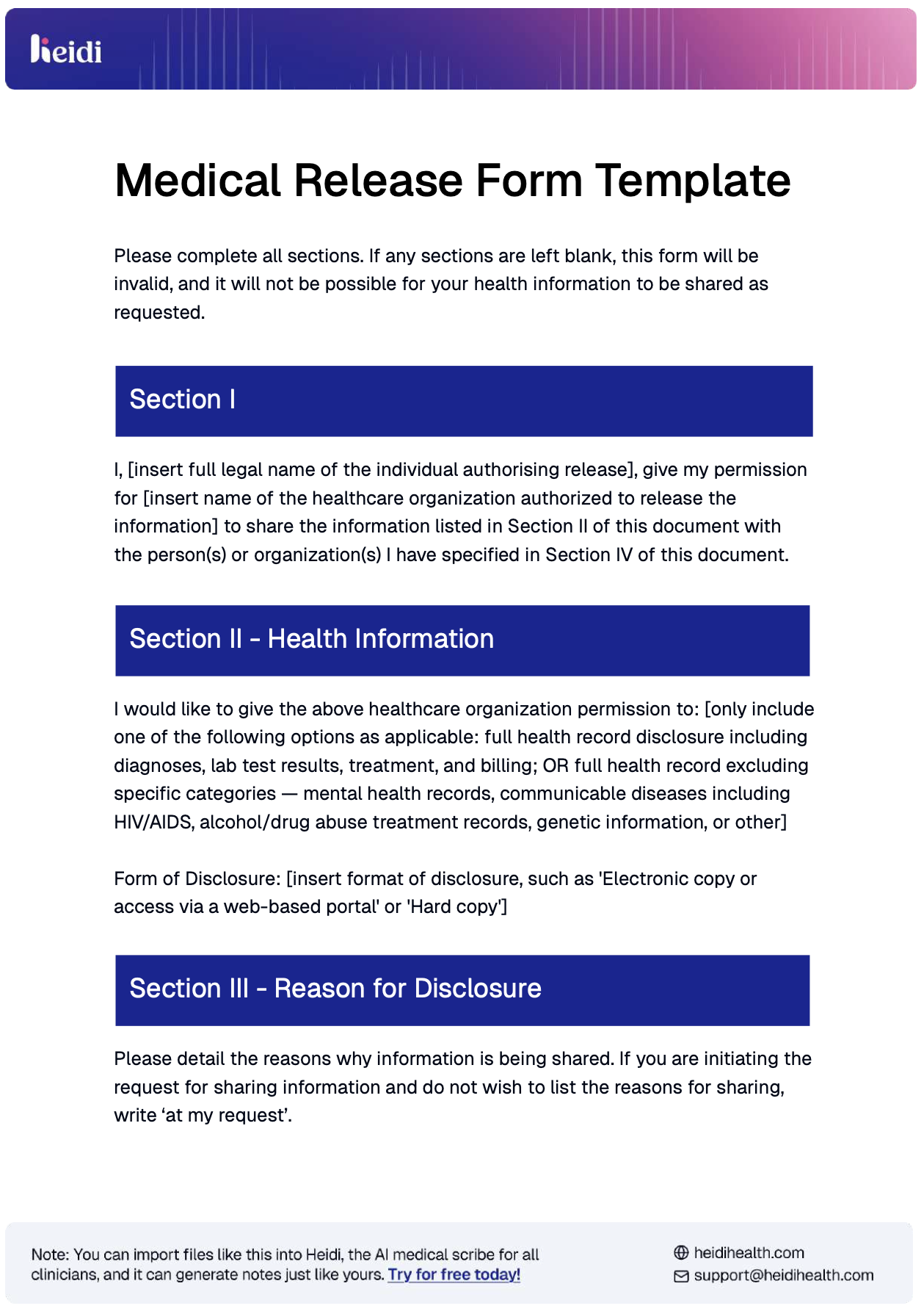 free printable medical records release form