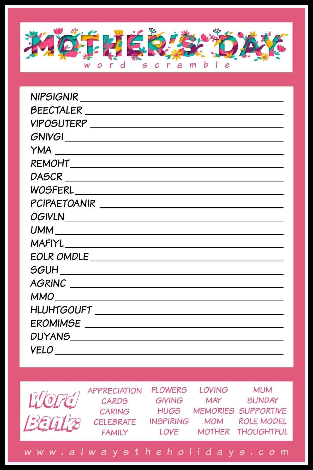 Mother s Day Word Scramble Puzzle Free Mother s Day Printable
