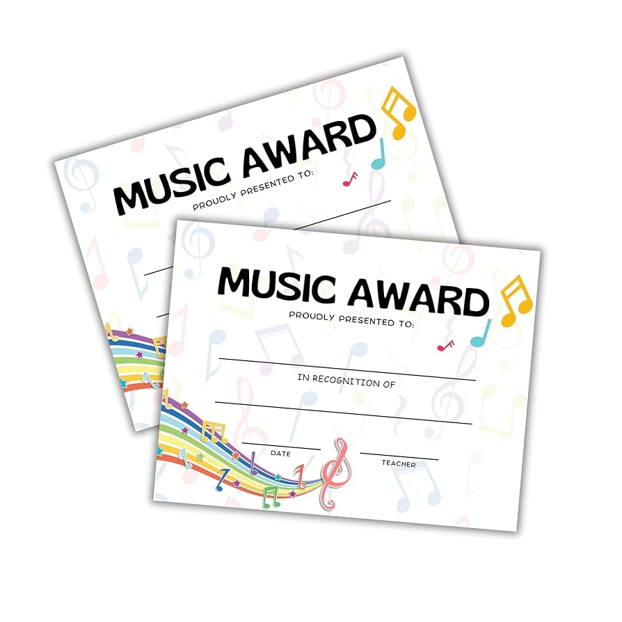 Amazon Music Award Certificate 50 Pk 8 5×11 Elementary Middle School Graduation Achievement Most Improved Student Lessons Kids Graduation End Of Year Notes Rainbow Orchestra Band Office Products