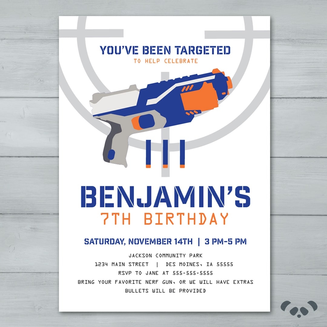 Nerf Birthday Invitation Nerf Invitation Dart Birthday Invitation Nerf Dart Invitation Nerf War Invitation Etsy