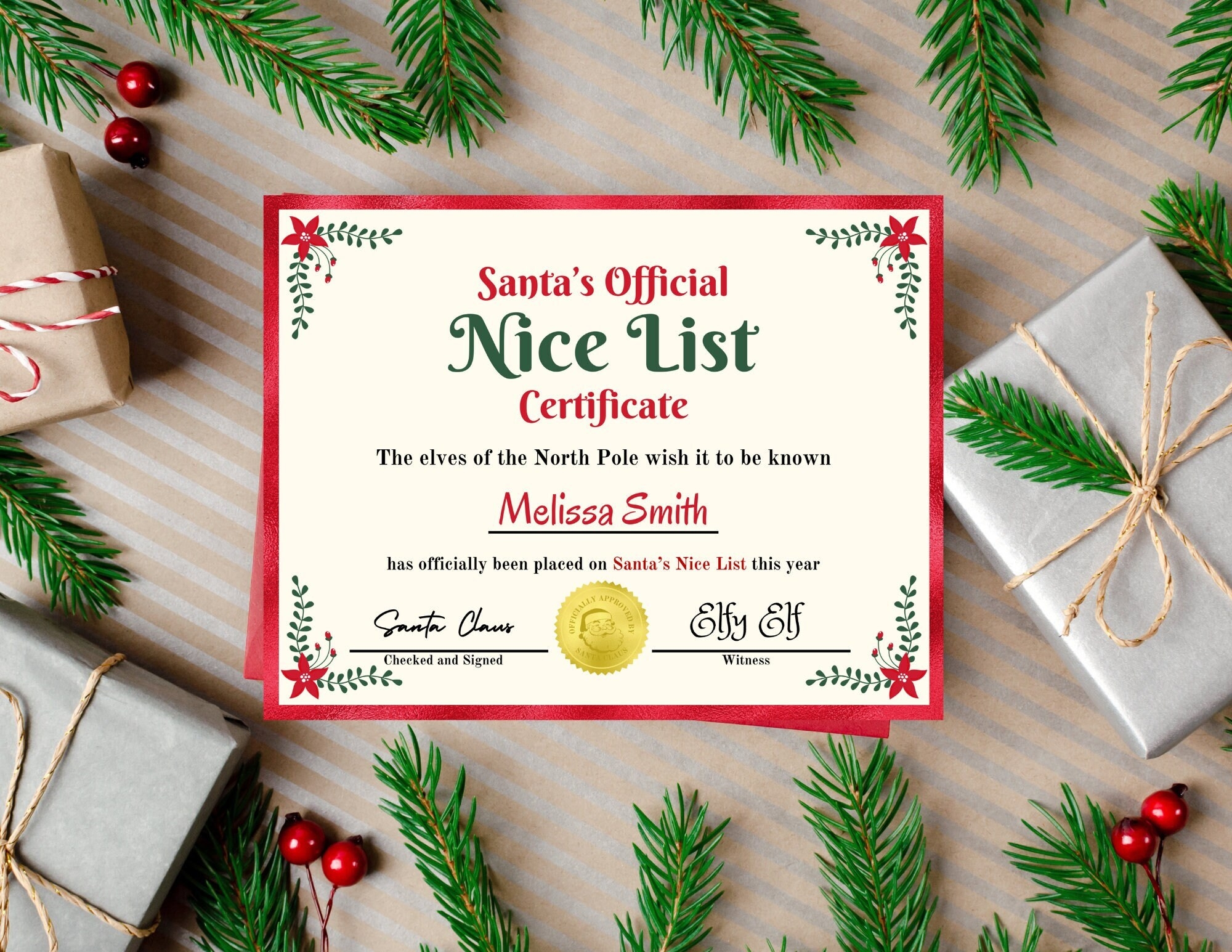 Santa s Official Nice List Certificate Customizable Christmas Xmas Gift For Kids Family Boys Girls Printable Instant Download 2023 Etsy