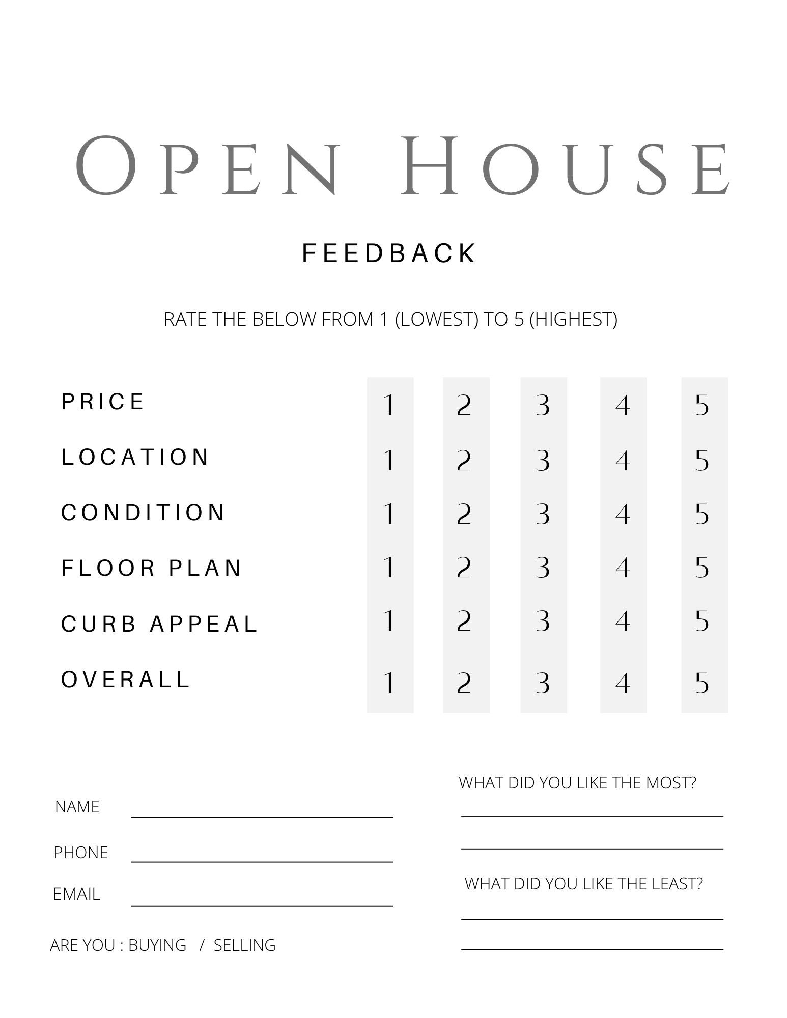 Open House Feedback Form INSTANT DOWNLOAD Feedback Form For Open House Realtor Open House Feedback Real Estate Open House Feedback Form Etsy