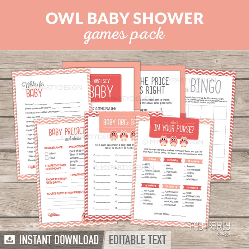 Owl Baby Shower Games Printable PDF My Party Design