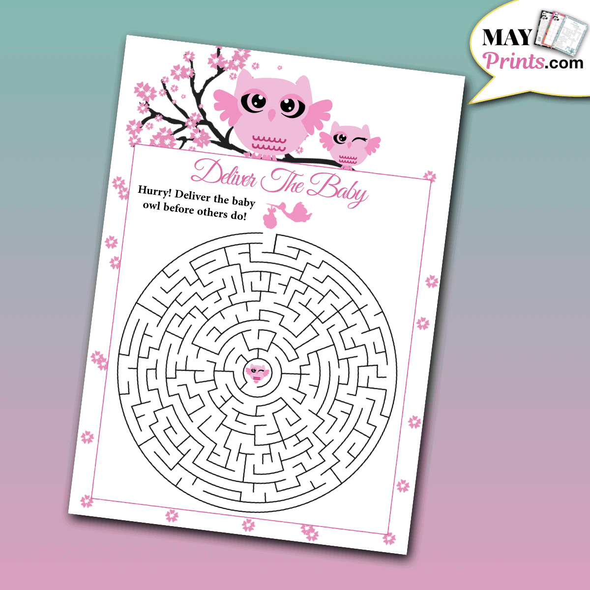 Pink Owl Baby Shower Games Printable PDF My Party Design