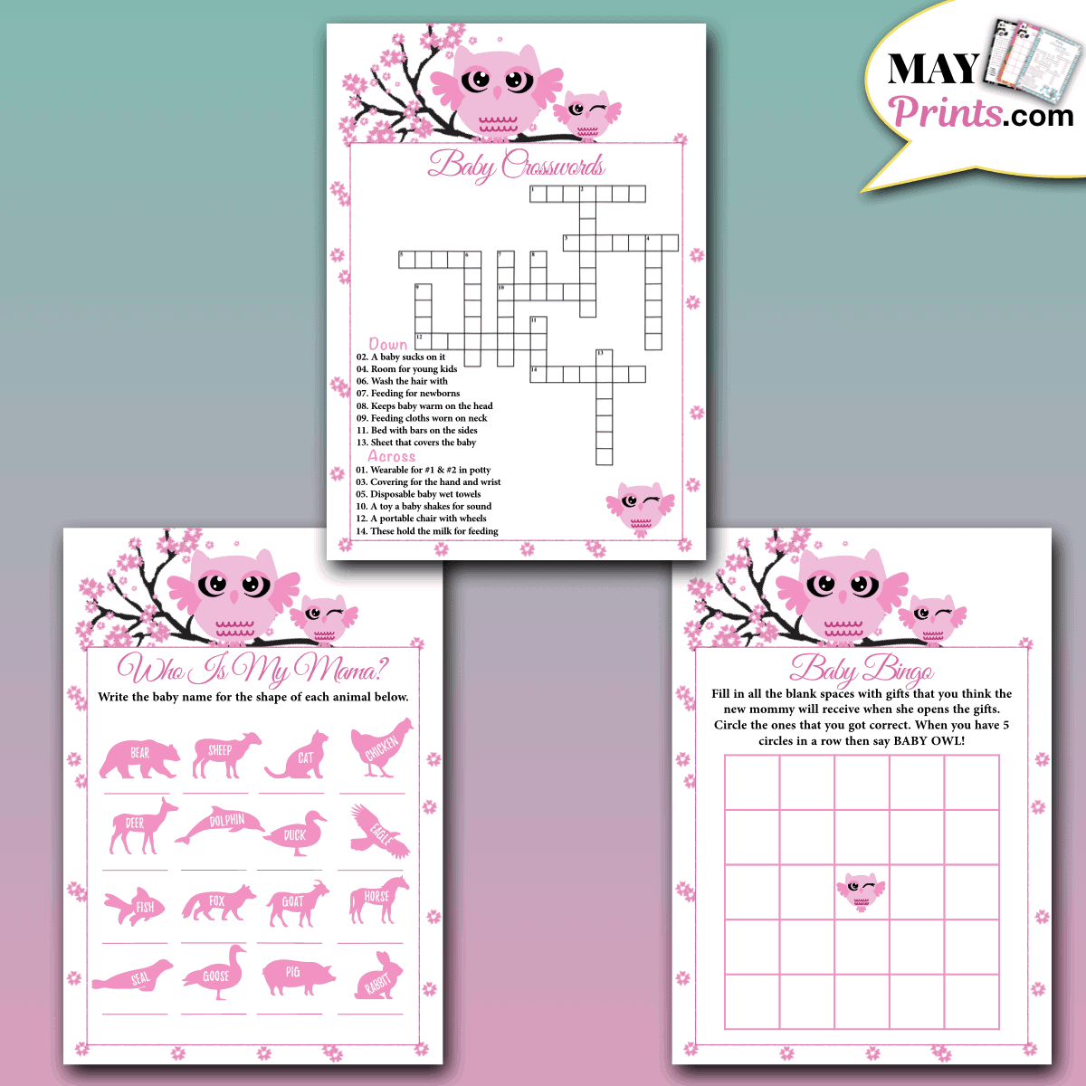 Printable Owl Baby Shower Games For Baby Girls