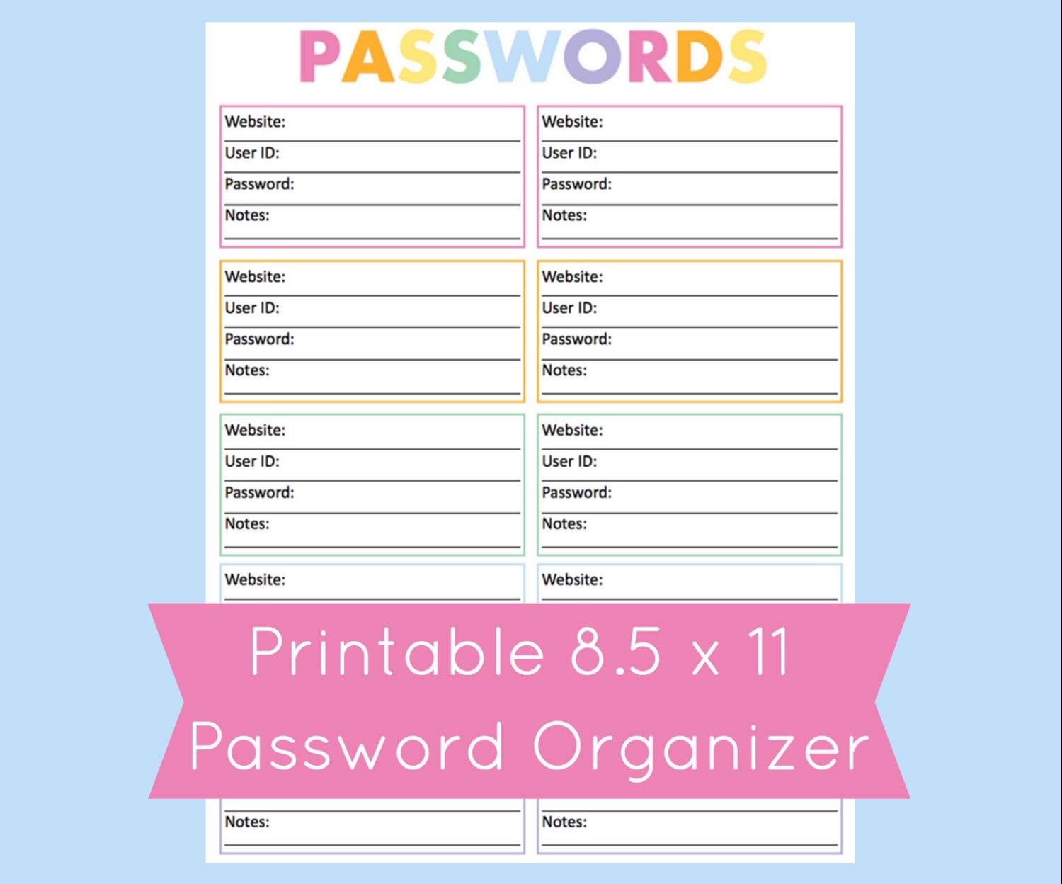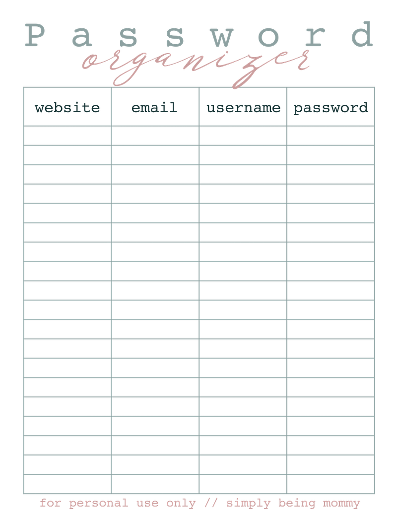 Free Printable Password Organizer