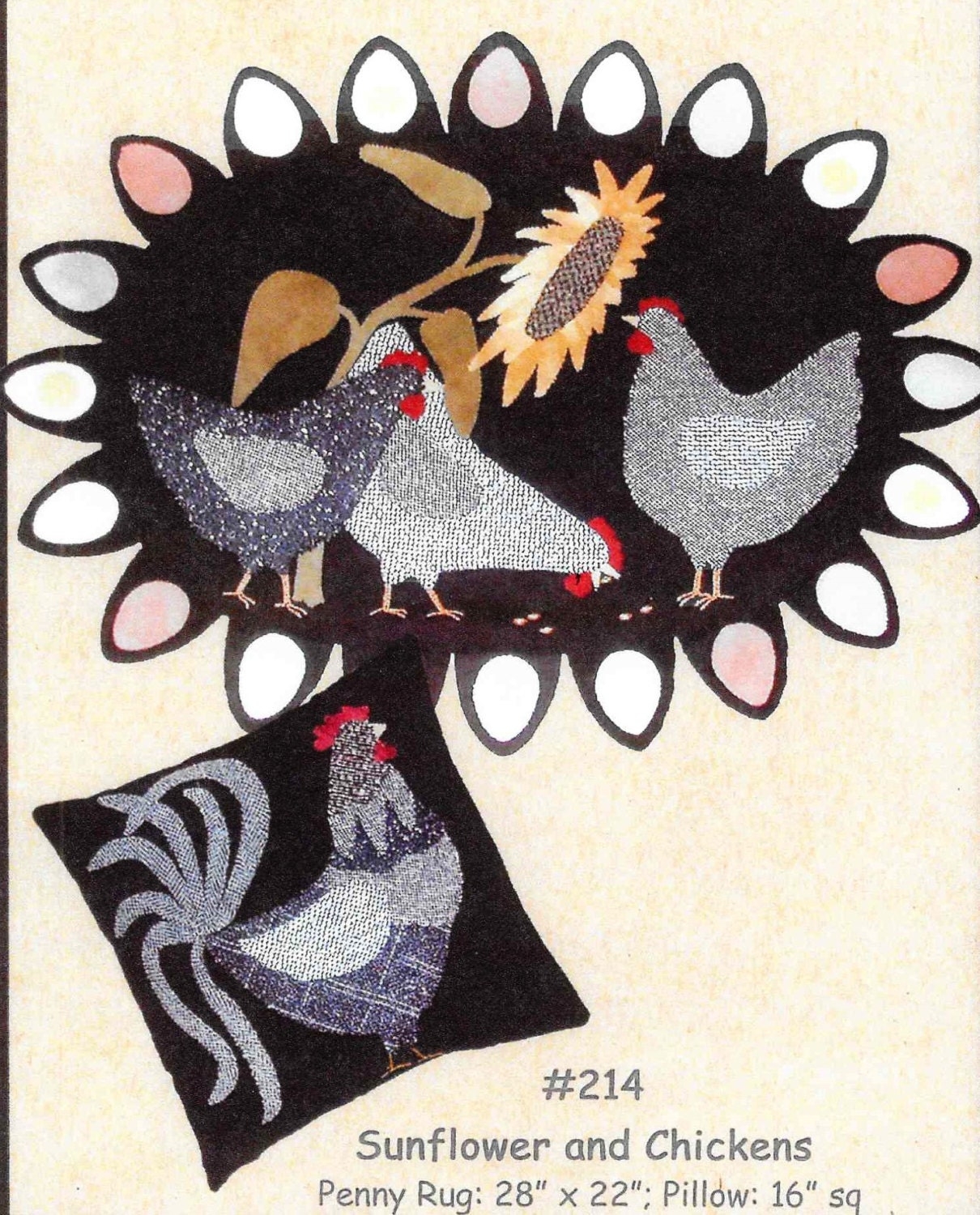 Wool Applique Pattern Sunflower And Chicken Penny Rug Pillow Primitive Decor Farmhouse Decor Bonnie Sullivan PATTERN ONLY
