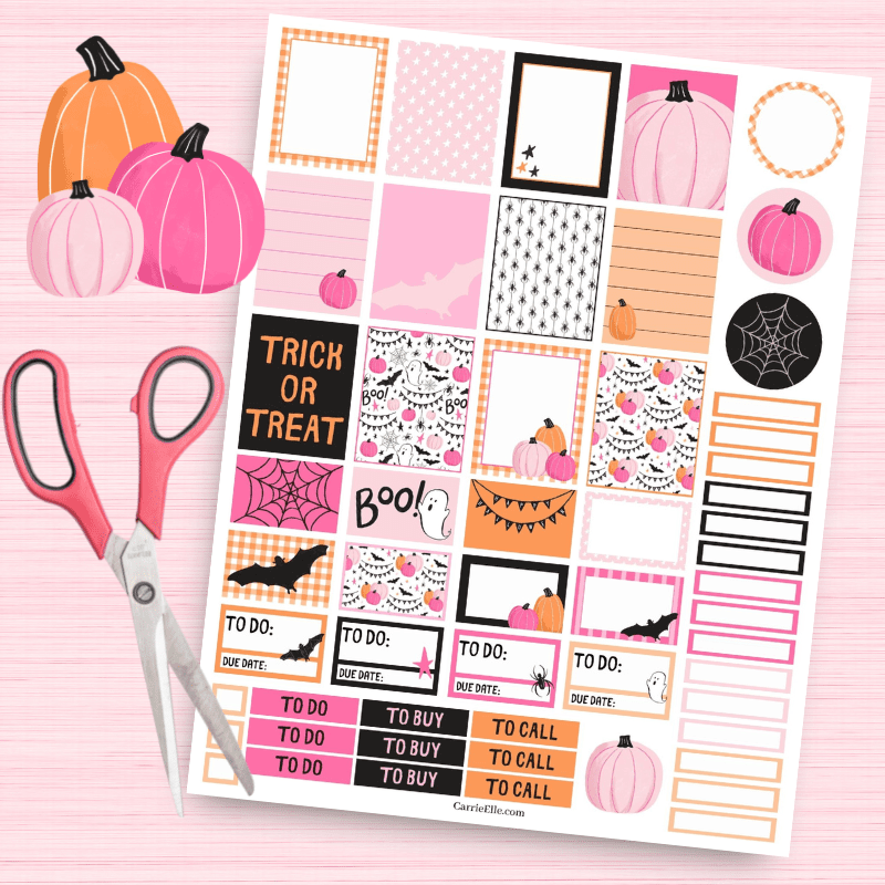 Free Printable Pink And Orange Halloween Planner Stickers Carrie Elle