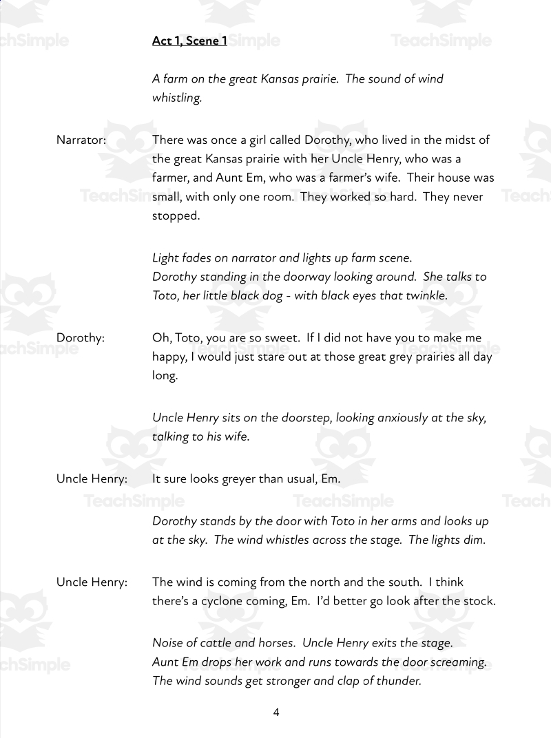 The Wonderful Wizard Of Oz Play Script 6 10 Years By Teach Simple