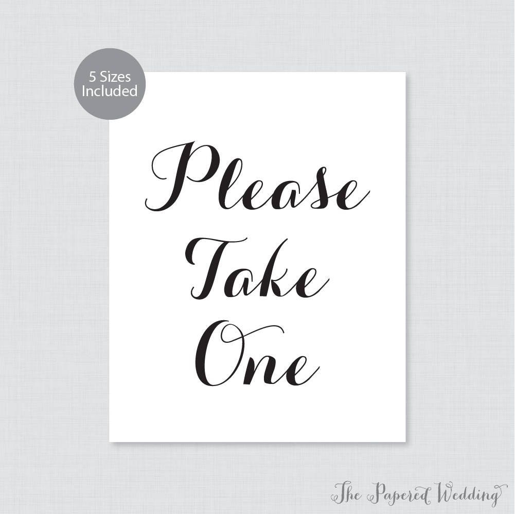 Printable Please Take One Sign Black And White Wedding Sign Simple Calligraphy