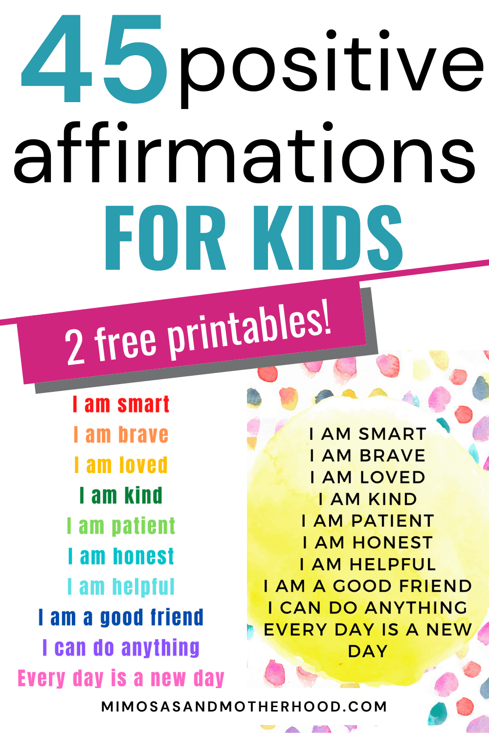 111 Daily Positive Affirmations For Kids Free Printable Cards
