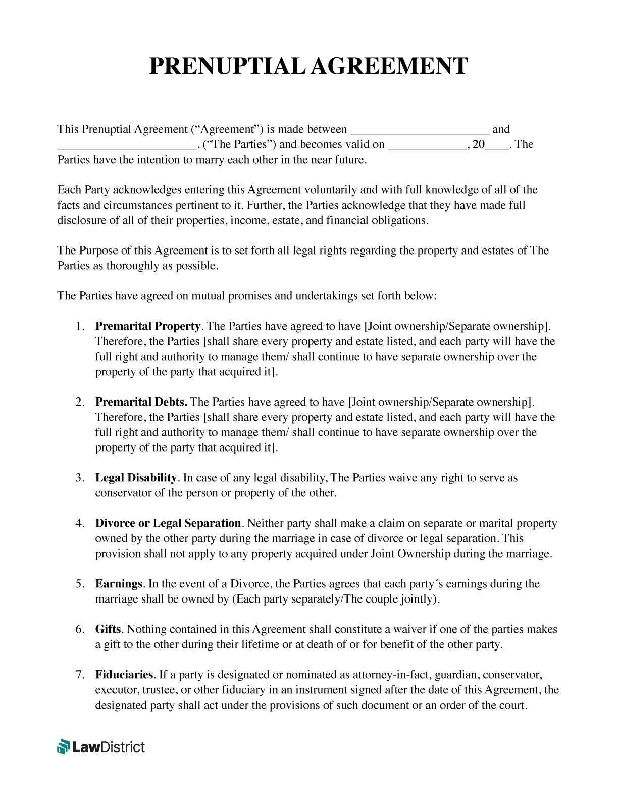 Free Prenuptial Agreement Template PDF U0026 Sample LawDistrict