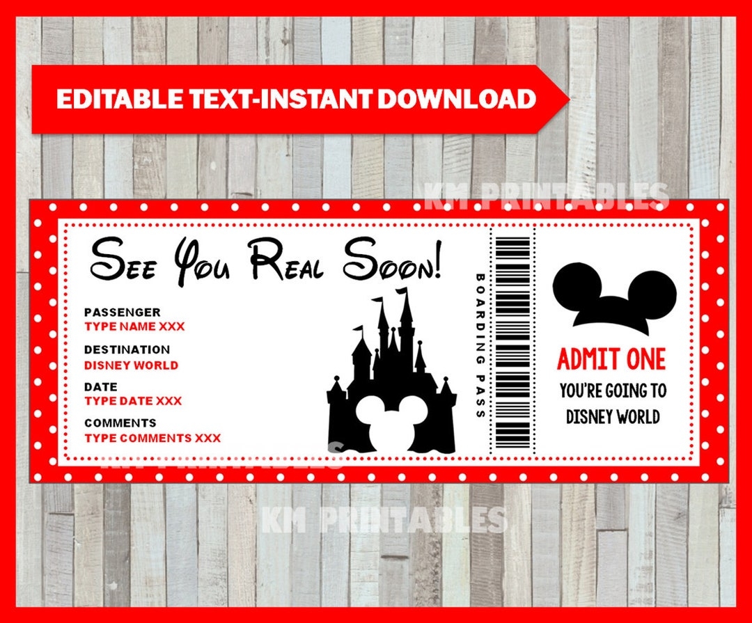 Printable Ticket To Disneyworld DIY Personalize Disneyworld Disneyland Boarding Pass Surprise INSTANT DOWNLOAD Etsy
