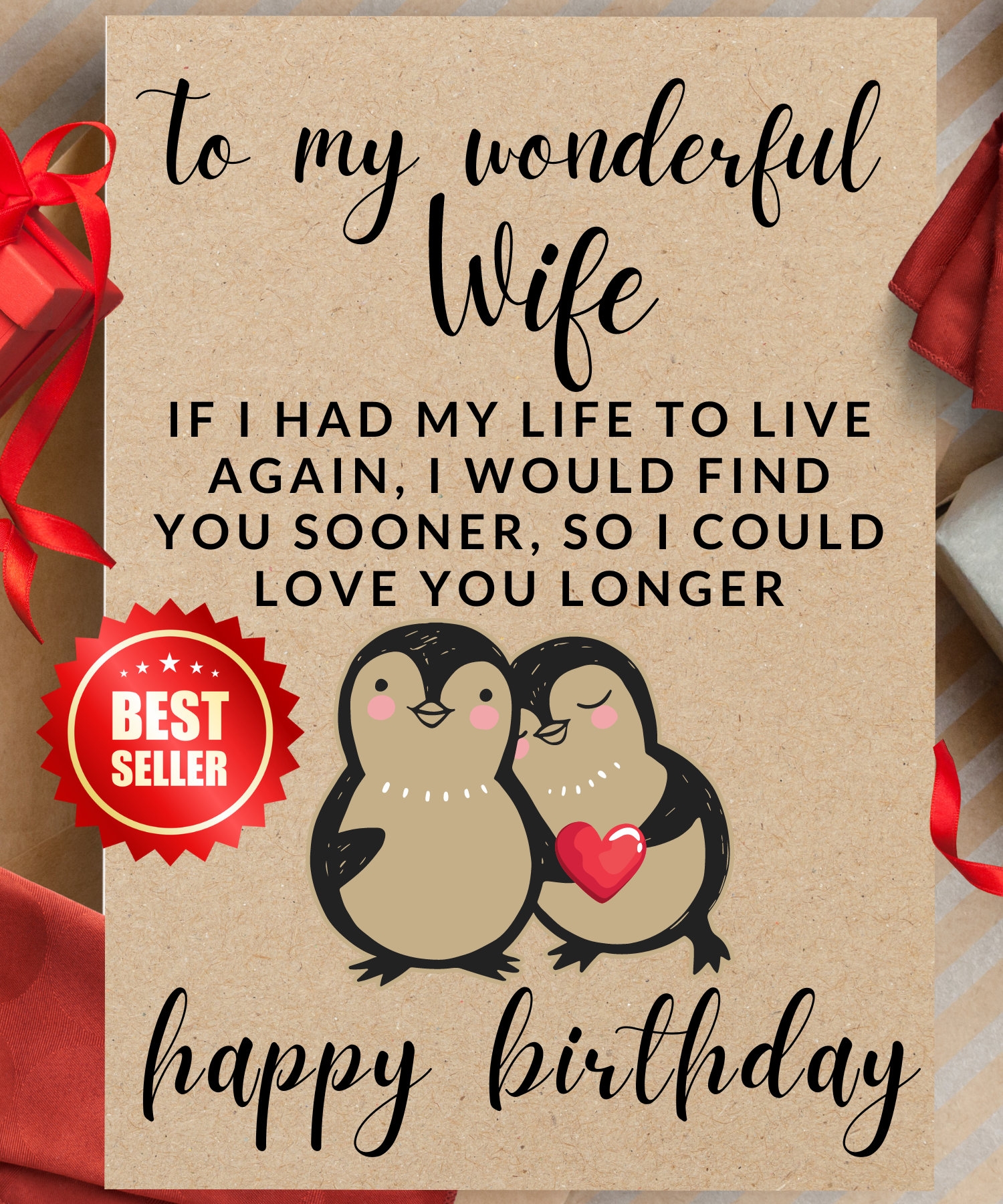 Romantic Wife Soulmate Birthday Card Romantic Poem Penguin
