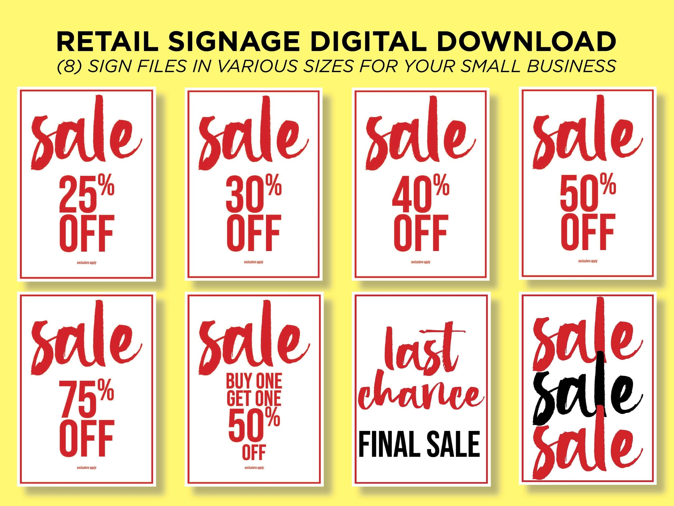 RETAIL SALE Sign Bundle I Download U0026 Print I Store Signs I Posters