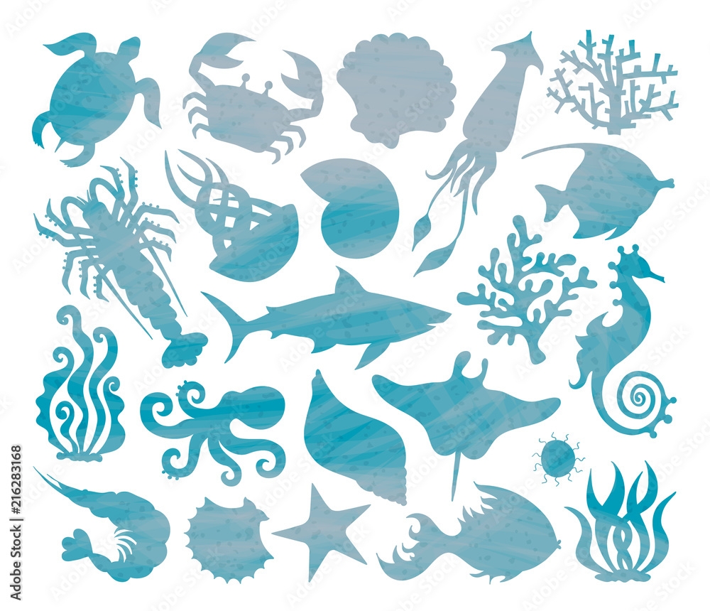 Vector Set Of Silhouettes Of Sea Animals Stencil Marine Life Undersea World Stock Vector Adobe Stock
