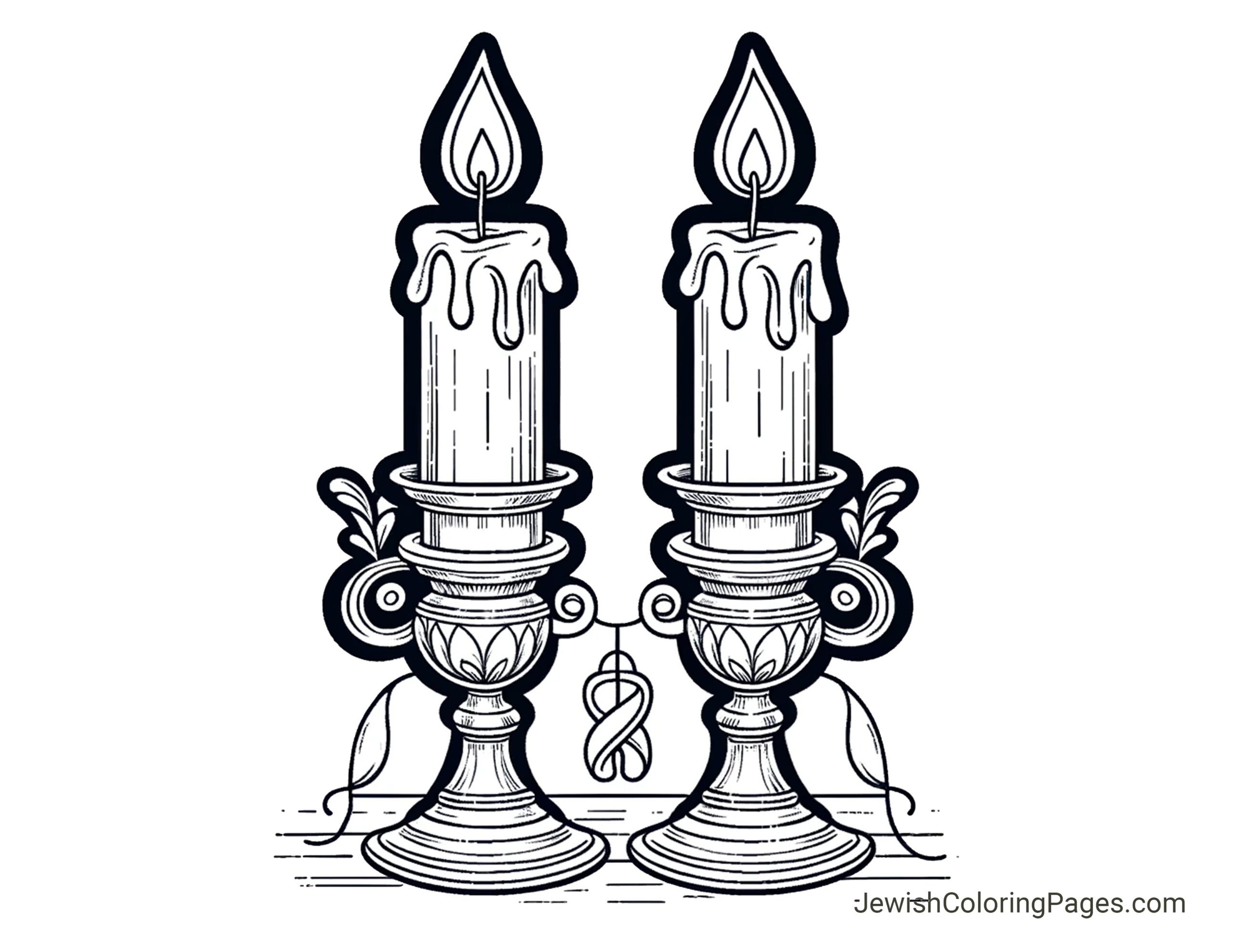 Shabbat Candles Free Printable Coloring Page Jewish Coloring Pages