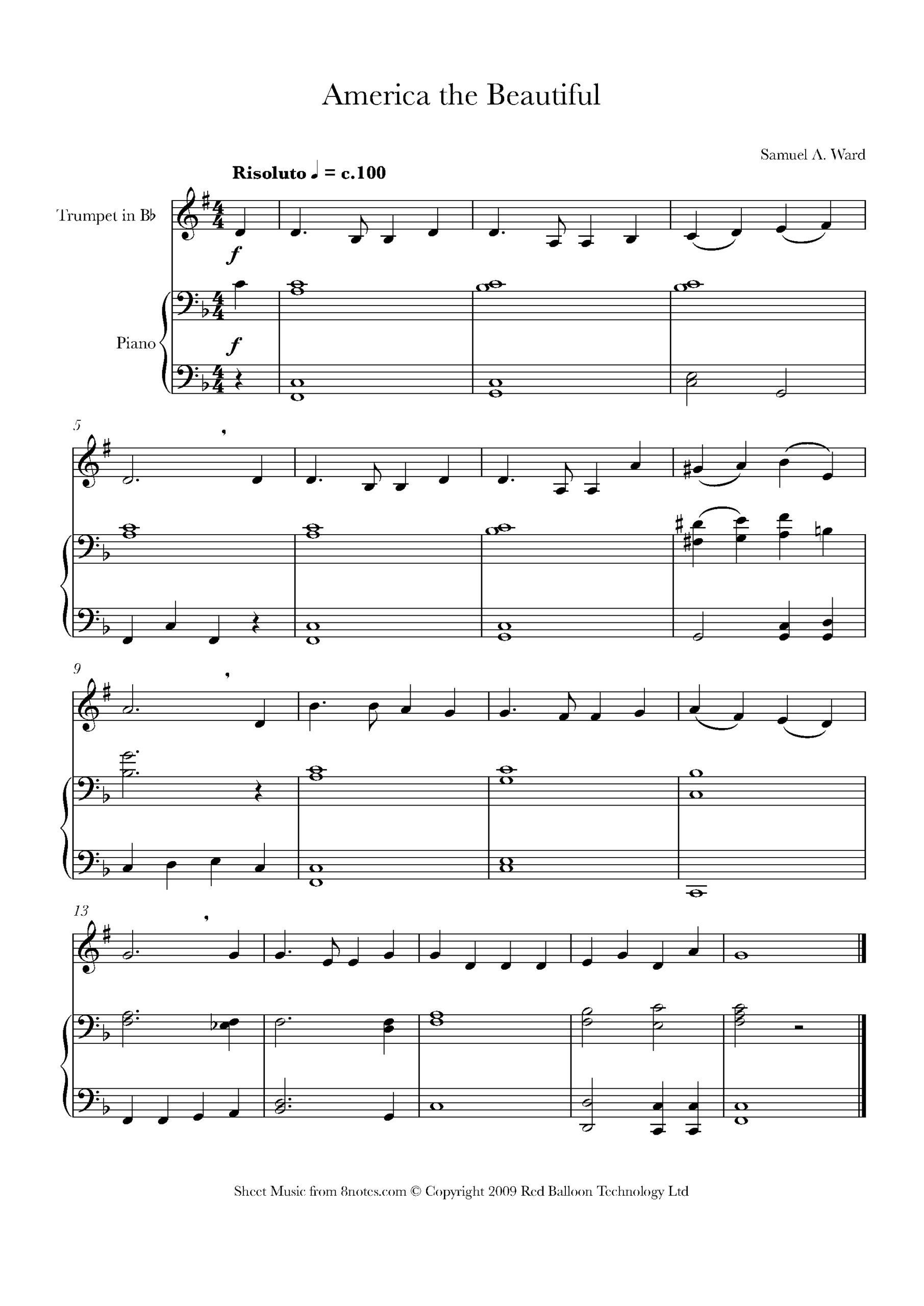 Samuel A Ward America The Beautiful For Trumpet Free Sheet